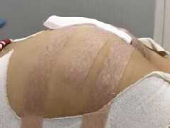 假体丰臀术后当天的手术台上的照片